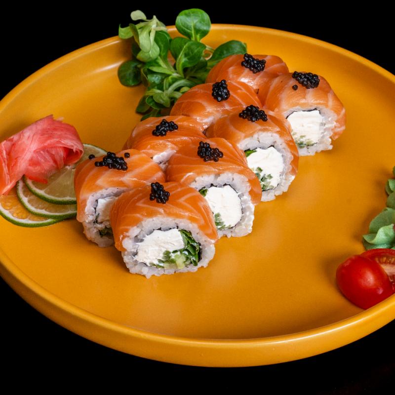 Ryż, nori, Philadelphia, ogórek, bazylik, łosoś lekko słony, spicy