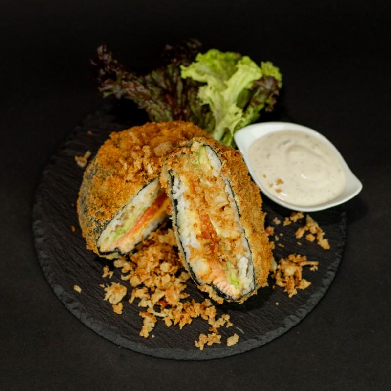 Ryż , Nori, Łosoś wędzony, Yasashi, Tykwa, Cheddar, Tempura, Panko, Cebula prażona