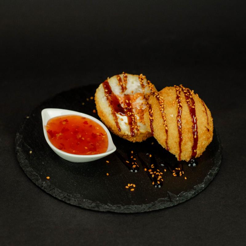 Ryż, krewetka gotowana, philadelphia, panko, tempura, sos teriyaki