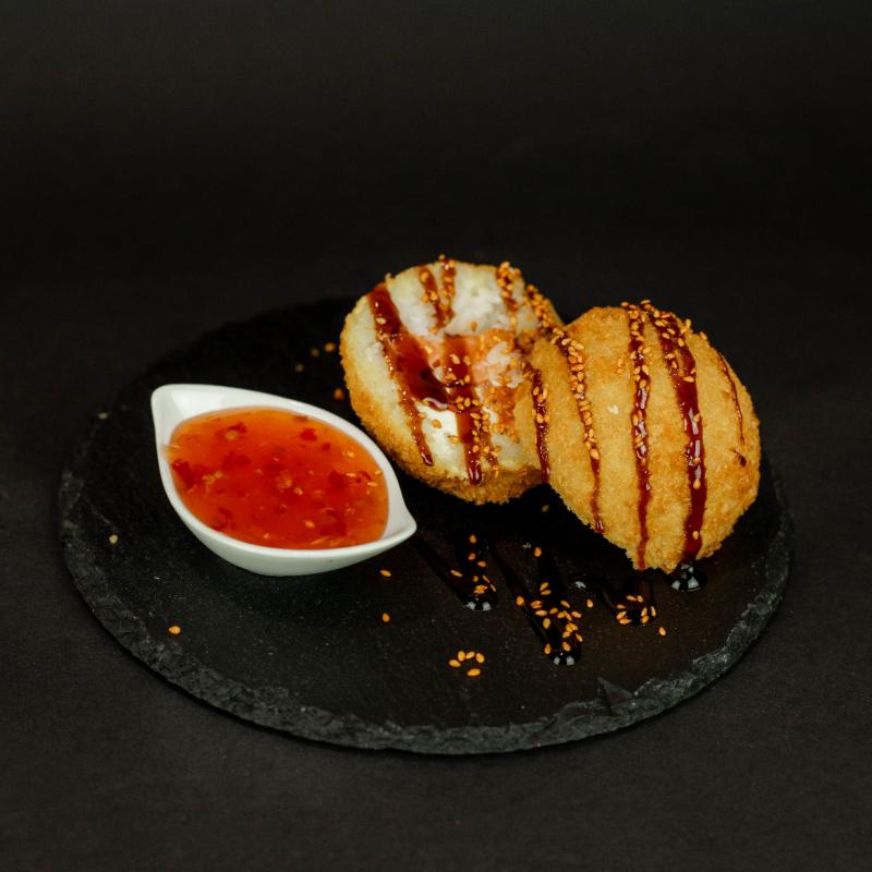 Ryż, łosoś grillowany, serek philadelphia, panko, tempura, sos teriyaki