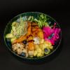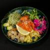 Ryz, łosoś lekko słony, mango, daikon, awokado, ogórek, tamago, dressing miodowo-cytrynowy,...
