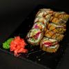 Ryż, Nori, Sos spicy-majo, Tykwa, Cheddar, Tempura, Panko, Cebula prażona